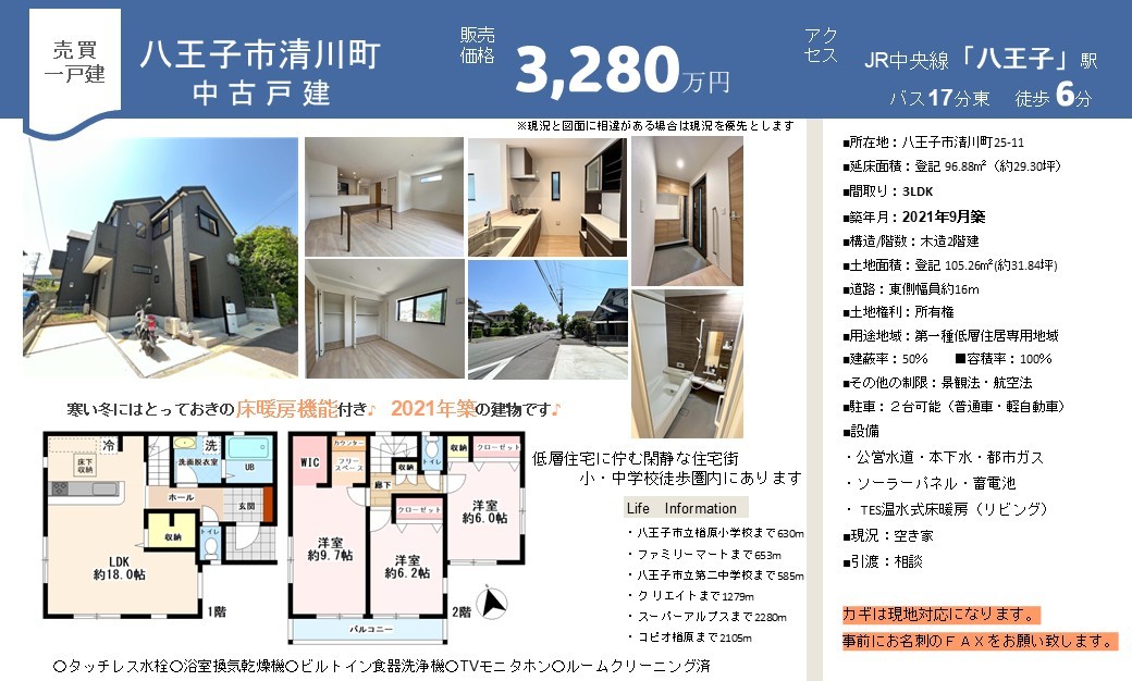 本日は【お預かり物件】八王子市清川町 中古戸建(3,280万円)のご紹介です。