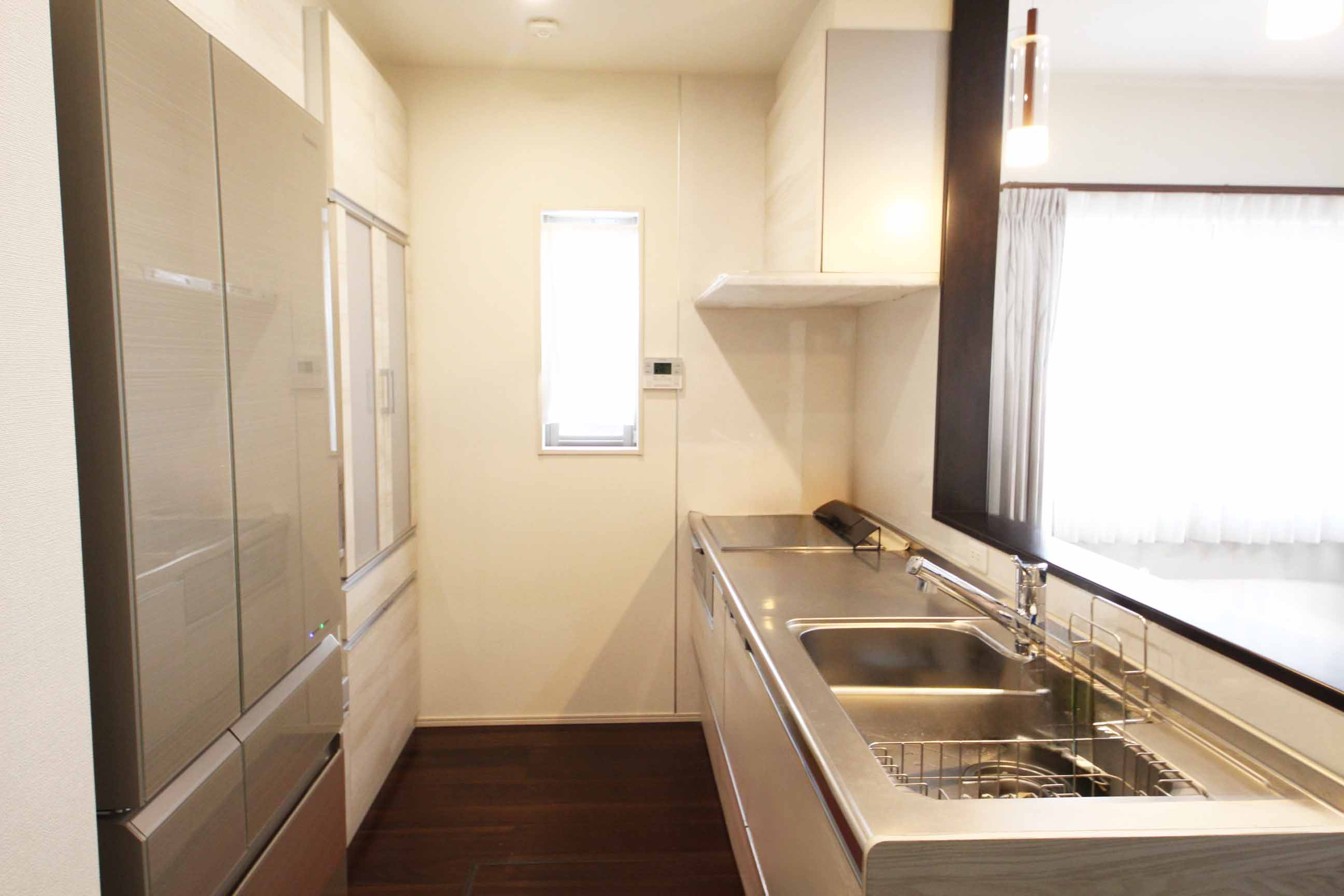 キッチンの背面にはカップボードと収納(パントリー)がございます。
