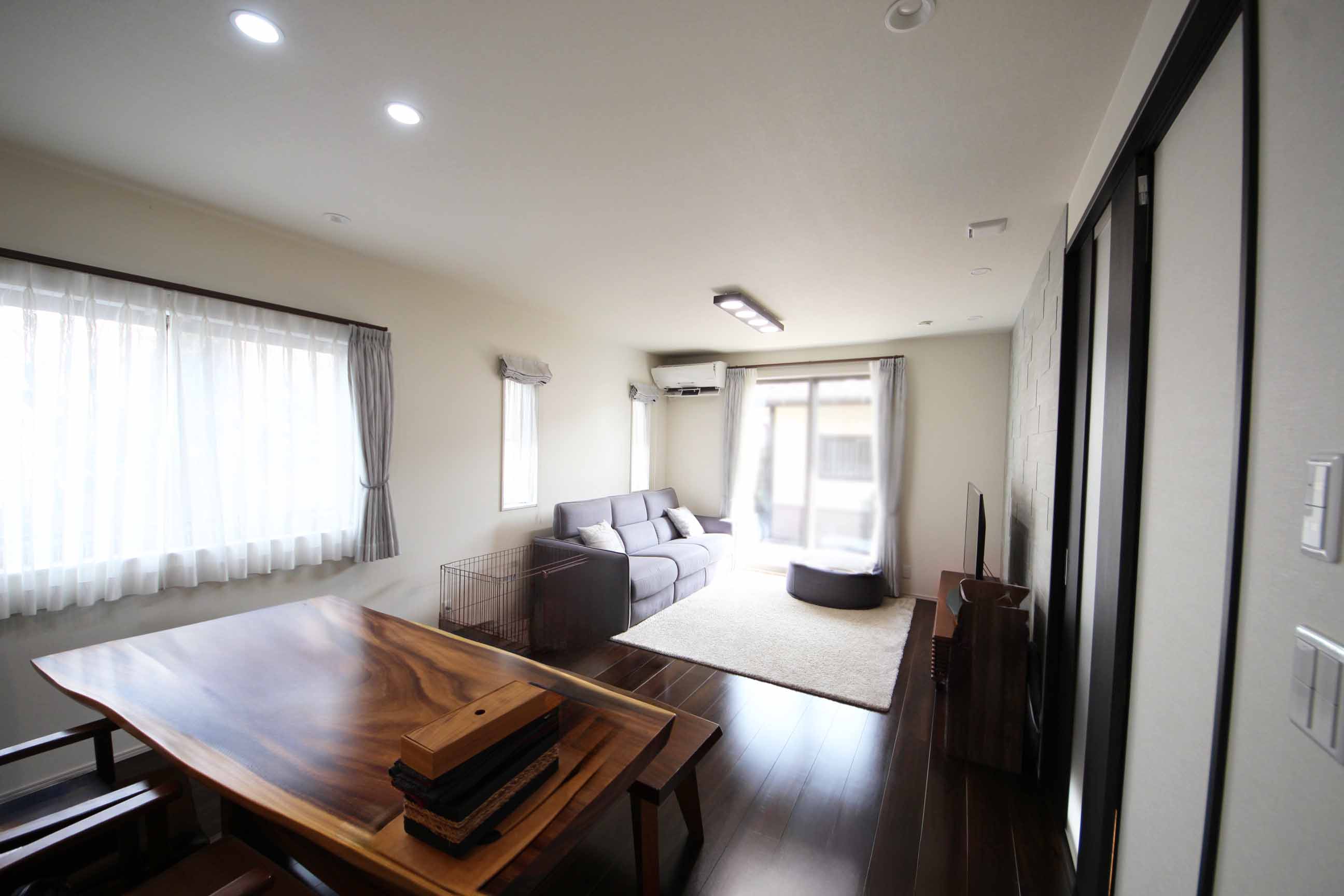 17.6帖の1階LDK。窓が多く、明るく開放的な空間になっています。